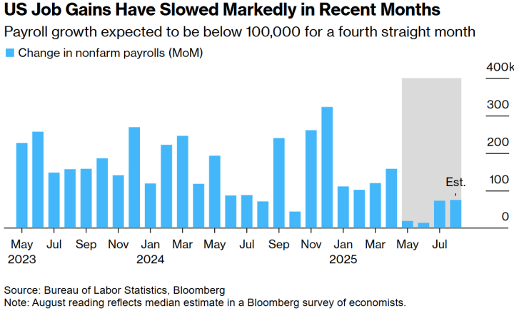 经济学家预计周五将发布的就业报告将延续疫情以来美国最疲软的就业增长态势,这很可能促使美联储决定降息。